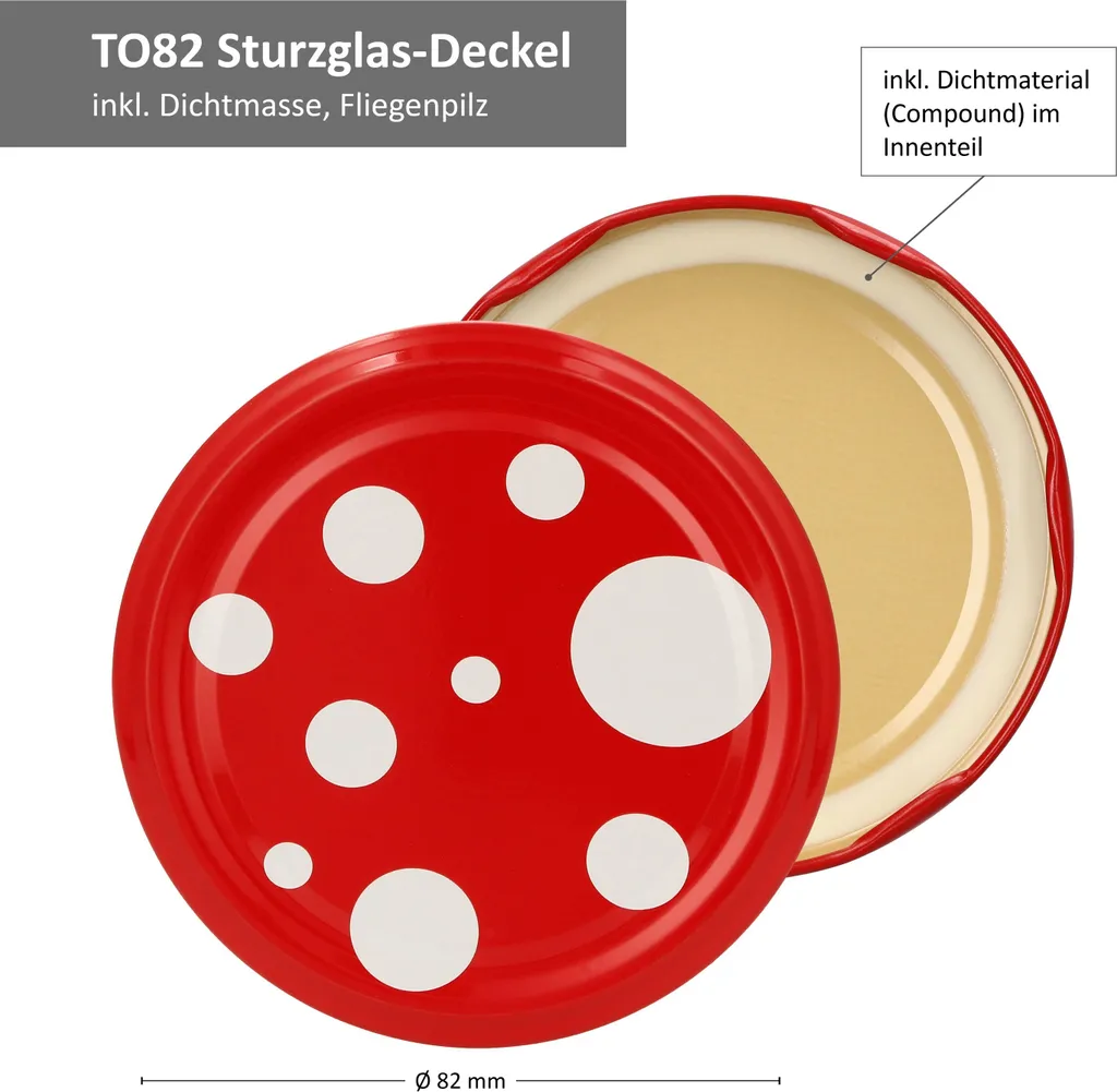 - 12x TO 82 – Twist-Off Deckel mit Fliegenpilz-Dekor, Stahlblech