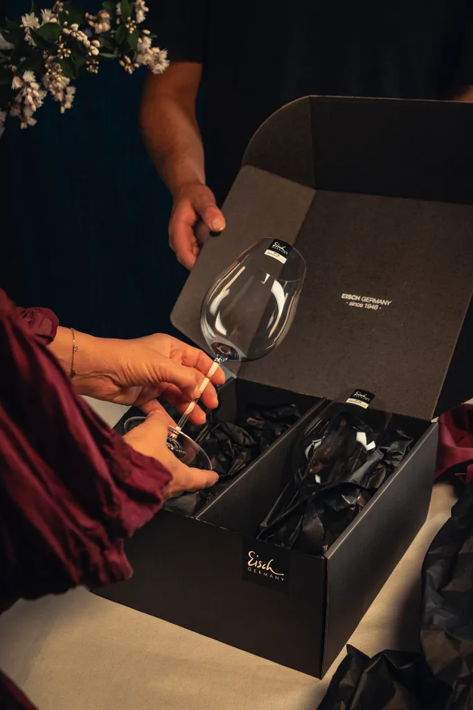 Den Gläsern mit dem mehrfach ausgezeichneten EISCH SENSISPLUS- Aromen-Feature wird weltweit von Genießern und Experten höchste Beachtung geschenkt. Erleben Sie selbst die Aromendichte in den Gläsern UNITY SENSISPLUS.Das Weinmagazin „VINUM“ schreibt: „Das SENSISPLUS-Glas faltete die Gesamtheit der Aromen (…) auseinander wie einen schillernden Fächer.“Wie das Fingerspitzengefühl des Glasbläsers mit der Eigenwilligkeit des flüssigen Glases verschmilzt, so entsteht in den Gläsern der UNITY SensisPlus Serie eine Symbiose aus Aromen und Glas.Die gläserne Brillanz bleibt auch nach der Reinigung im Geschirrspüler erhalten.Das Rotweinglas eignet sich besonders für edle Rotweine von mittlerem bis voluminösem Körper mit komplexen Geschmacksschichten und weichen Tanninen und mit ausgewogenen Holznoten.Beispiele:Sangiovese, Pinot Noir, Cabernet Sauvignon, Ripasso, Chianti, Merlot, Blaufränkisch, Tempranillo