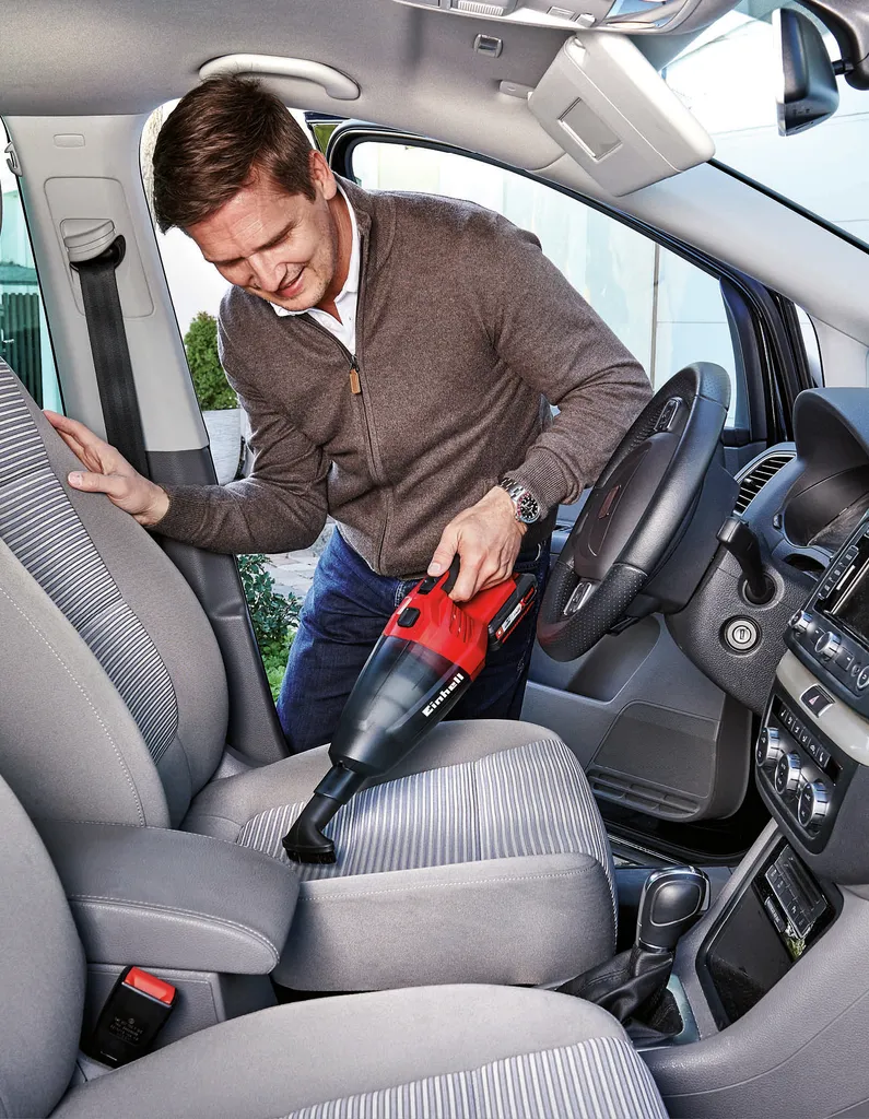 Der Einhell Akku-Handstaubsauger TE-VC 18 Li-4 AH ist jederzeit griffbereit, um Schmutz und lästige Krümel zu beseitigen, ob auf Teppich, Sofa oder Tisch. Das handliche Kraftpaket gehört der bewährten Power X-Change-Familie von Einhell an. Akkus dieser Reihe können in allen Geräten der Systemfamilie verwendet werden. Kurze Reichweiten, zahllose Akkus und Ladegeräte sowie schwache Leistungen gehören der Vergangenheit an. Der Akku-Handstaubsauger reinigt blitzschnell jede Oberfläche dank seiner drei Düsen, die im Lieferumfang enthalten sind. Die Bodendüse ist speziell für Hartböden und glatte Flächen geeignet. Eine weitere Düse ist für Polster und Stoffe geeignet. Mit der Fugendüse reinigt der Benutzer auch schwer erreichbare Stellen ohne große Mühen. Mit Hilfe des 46,5 Zentimeter langen Verlängerungsrohrs kann der handliche Akku-Staubsauger auch als Bodenstaubsauger und damit bequem in einer aufrechten Haltung eingesetzt werden. Der Staubfangbehälter verfügt über ein Fassungsvermögen von 540 Milliliter.