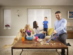 Durch die mitgelieferte Tierhaarbürste lassen sich ganz einfach Hunde- oder Katzenhaare entfernen. Die Lithium-Technologie erlaubt anhaltende Leistung ohne Leistungsverlust in der niedrigsten Stufe von bis zu 21 Minuten. Er verfügt über 2 Saugstufen und durch die ausziehbare Fugendüse ist der Zugang zu höher gelegenen oder engeren Stellen einfacher möglich und erleichtert das Reinigen. Über die 3-stufige LED-Anzeige wird der aktuelle Ladezustand angezeigt und über den Filtersensor wird auf eine erforderliche Reinigung des Filters hingewiesen. Der transparente Schmutzbehälter bietet eine einfache Schmutz-Entleerung auf Knopfdruck, sodass Kontakt mit dem Schmutz vermieden werden kann.