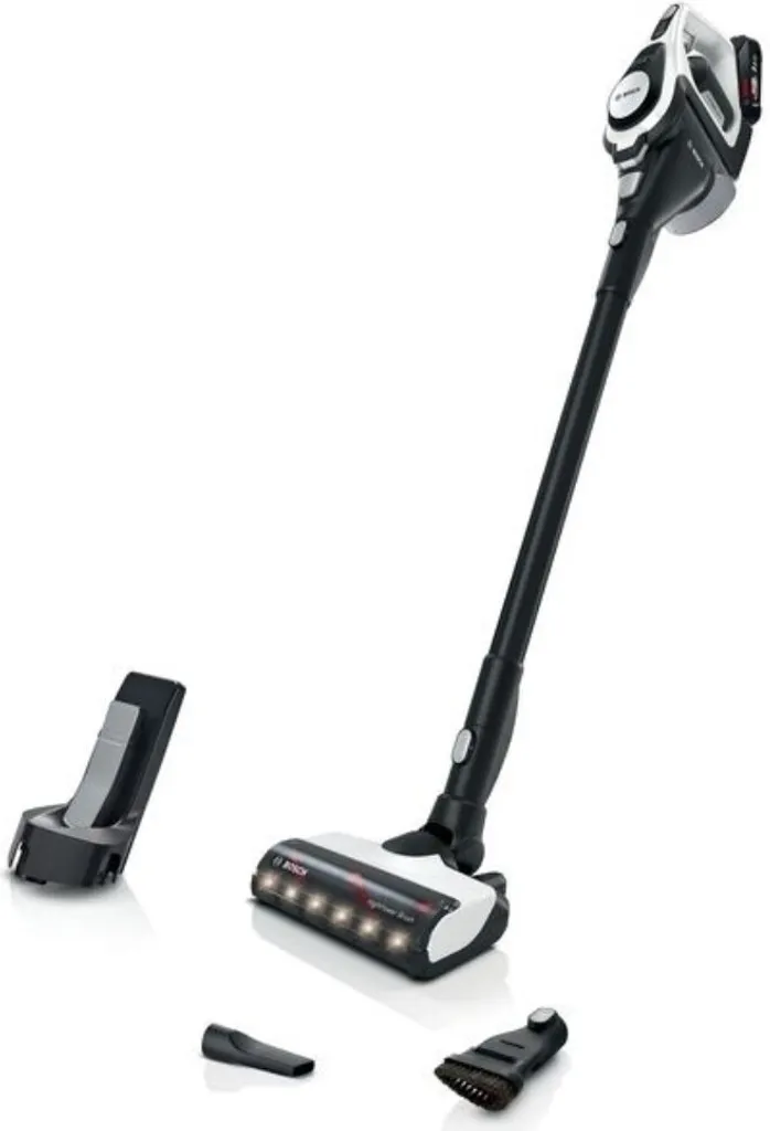 Präsentation : Der BOSCH Stielstaubsauger – Unlimited Serie 8 – Kabellos – 400 ml ist ein leistungsstarker Multifunktionsbesen, der eine optimale Reinigung vom Boden bis zur Decke ermöglicht. Er verfügt über drei Leistungsstufen: den Auto-Modus, der die Leistung automatisch anpasst, den Turbo-Modus für eine extrem gründliche Reinigung auf allen Bodenarten und den Eco-Modus für eine maximal verlängerte Nutzungsdauer. Die Bürste ist ideal, um auch schwer zugängliche Bereiche zu erreichen. Sie kann um 80° gedreht werden und bietet so eine hohe Wendigkeit. Das Gerät ist mit einem Power For All 18V-Akku ausgestattet, der mit anderen Bosch-Produkten (Werkzeuge, Gartengeräte), aber auch mit Produkten anderer Marken (Gardena, Gloria, Wagner, Rapid usw.) kompatibel ist. Leeren Sie den Behälter schnell und einfach, ohne direkt mit dem Staub in Berührung zu kommen. Dieser Staubsauger ist mit praktischem Zubehör ausgestattet, mit dem Sie alle Arten von Böden und andere Oberflächen wie Tische, Polster und sogar das Innere Ihres Autos reinigen können. Das Unternehmen BOSCH zeichnet sich durch seinen Innovationswillen und sein soziales Engagement aus. Seit 1886 ist dieses multinationale Unternehmen auf die Herstellung von Elektrowerkzeugen, Haushaltsgeräten und Ausrüstungen für die Automobilindustrie spezialisiert. Auerdem ist das Unternehmen auf Industrie- und Gebäudetechnik spezialisiert. Vorteile: Multifunktional: Reinigung vom Boden bis zur Decke. Handstaubsauger und Besen Kabelloser und beutelloser Staubsauger Ergonomischer Abzug ohne die Notwendigkeit eines ständigen Drucks. Motorisierte Bürste mit LED-Beleuchtung Maxi-Autonomie: bis zu 40 Min. im Eco-Modus. 3 Leistungsstufen Rotierendes System zur Selbstreinigung des Filters. Der durchscheinende Behälter ermöglicht es, den Füllstand zu sehen. Einfache und hygienische Entleerung des Behälters. Power For All 18V-Akku, der mit anderen Produkten kompatibel ist. Integrierte Aufbewahrung von Zubehör Motorbetriebene „HighPower Brush“ mit „EasyClean“ Reinigung durch einfaches Abnehmen, mit schwenkbarem Halter/Kopf. Inklusive: Wandhalterung, HighPower Brush, kleine Düse, kleine 2-in-1-Möbelbürste Merkmale: Typ: Stielstaubsauger Technologie: Power For All – RotationClean System. PowerPlus Lithium-Batterie: 18 V Art des Behälters: beutellos Fassungsvermögen des Behälters: 400 ml Verwendung: kabellos Saugkraft: 3 Stufen Akkulaufzeit: maximal 45 Minuten. Ladezeit: 5 h Farbe: Schwarz und Wei Abmessungen (L x H x B) : im Modus „Wischer“: 21,1 x 127,7 x 25,2 cm im „Hand“-Modus: 29 x 80 x 20 cm Gewicht: 3 kg Ref.