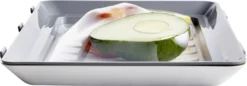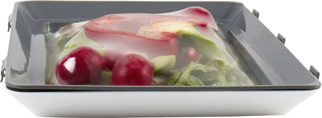 Kein Verpackungsmüll mehr! Mit den wiederverwendbaren Click & Fresh bringen Sie Aufschnitt, Käse, Gemüse, Fleisch oder Fisch einfach und sicher nach Hause. Sie vermeiden damit jede Menge Verpackungsmüll und schonen die Umwelt. Keine vertrockneten Lebensmittel mehr, weniger Verpackungsmaterial. Click & Fresh ist mit einer innovativen und extrem widerständigen Folie ausgestattet, die durch Luftabschluss bis zu 3 cm dicke Lebensmittel frisch hält. Click & Fresh eignet sich sowohl für die Mikrowelle als auch für den Geschirrspüler. Er ist stapelbar und somit platzsparend.Maße: 23 x 30,5 x 3 cmBPA-freigeeignet für Mikrowelle und Geschirrspülerstapelbar