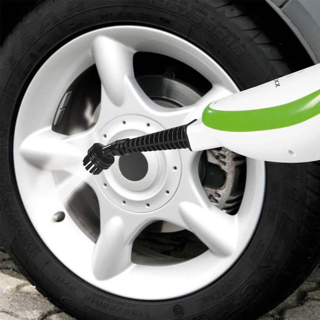 - Großer & kleiner Rundbürstenaufsatz zum Entfernen von Schmutz auf Fliesen, Gittern, Felgen etc.