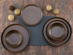 CreaTable, 23659, Serie Uno Braun, Geschirrset, Teller Set 12 Teilig, Farbe:Braun