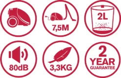 Der Dirt Devil Beutelsauger ist mit einer Kombibürste und einem Fugenwerkzeug ausgestattet. Mit der Kombibürste und dem Teleskopstiel können Sie dank der einstellbaren Saugleistung verschiedene Arten von Böden einfach und schnell von Staub und Schmutz befreien. Mit der Fugendüse erreichen Sie dann auch schwer zugängliche Stellen. Mit der Fugendüse können Sie auch den Innenraum Ihres Autos reinigen. Dank des 5 Meter langen Netzkabels, der 7,5 Meter langen Reichweite und des Gewichts von 3,3 Kilogramm können Sie den Staubsauger überallhin mitnehmen. Nach dem Gebrauch lässt sich das Kabel des Beutelstaubsaugers dank des integrierten Kabelaufrollsystems einfach und schnell aufrollen. Und schließlich ist der Staubsauger mit 80 Dezibel im Vergleich zu anderen Staubsaugern relativ geräuscharm.