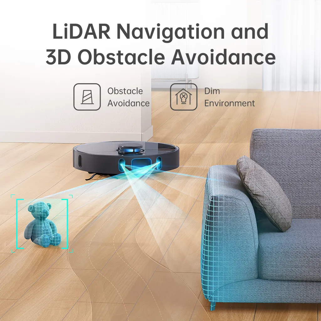 Der neue automatische Reinigungsroboter Z10 Pro ist mit einem großen Staubsaugerbeutel mit einem Fassungsvermögen von bis zu 4 Litern ausgestattet, der Staubsaugen und Wischen in einem Arbeitsgang ermöglicht, mit einer enormen Saugkraft von 4000Pa, LDS LiDAR Navigation kombiniert mit hochpräziser 3D Technologie und einem großen 5200mAh Akku für die Reinigung großer Häuser.