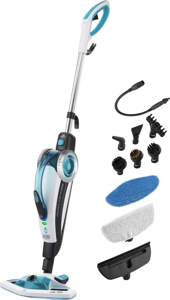 Der Dampfreiniger ETA Azurit 1.500 Watt, hat die Kraft von mehreren Helfern. Mit dem umfangreichen Zubehör können Sie nicht nur verschiedene Böden reinigen, sondern auch Bäder, Waschbecken, Fugen oder Autoinnenräume, sowie Räder. Der Dampfreiniger ETA Azurit ist in nur 30 Sekunden einsatzbereit, da er das Wasser nach und nach aufheizt und aufsaugt.