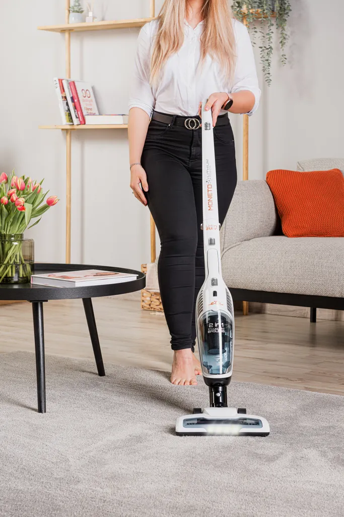 Genießen Sie kabelloses Staubsaugen mit dem ETA Moneto Stabstaubsauger. Dank des kabellosen Betriebs und des leistungsstarken 21,6-V-Li-Ion-Akkus können Sie Ihre Sorgen um das Kabel hinter sich lassen und sich uneingeschränkt bewegen.