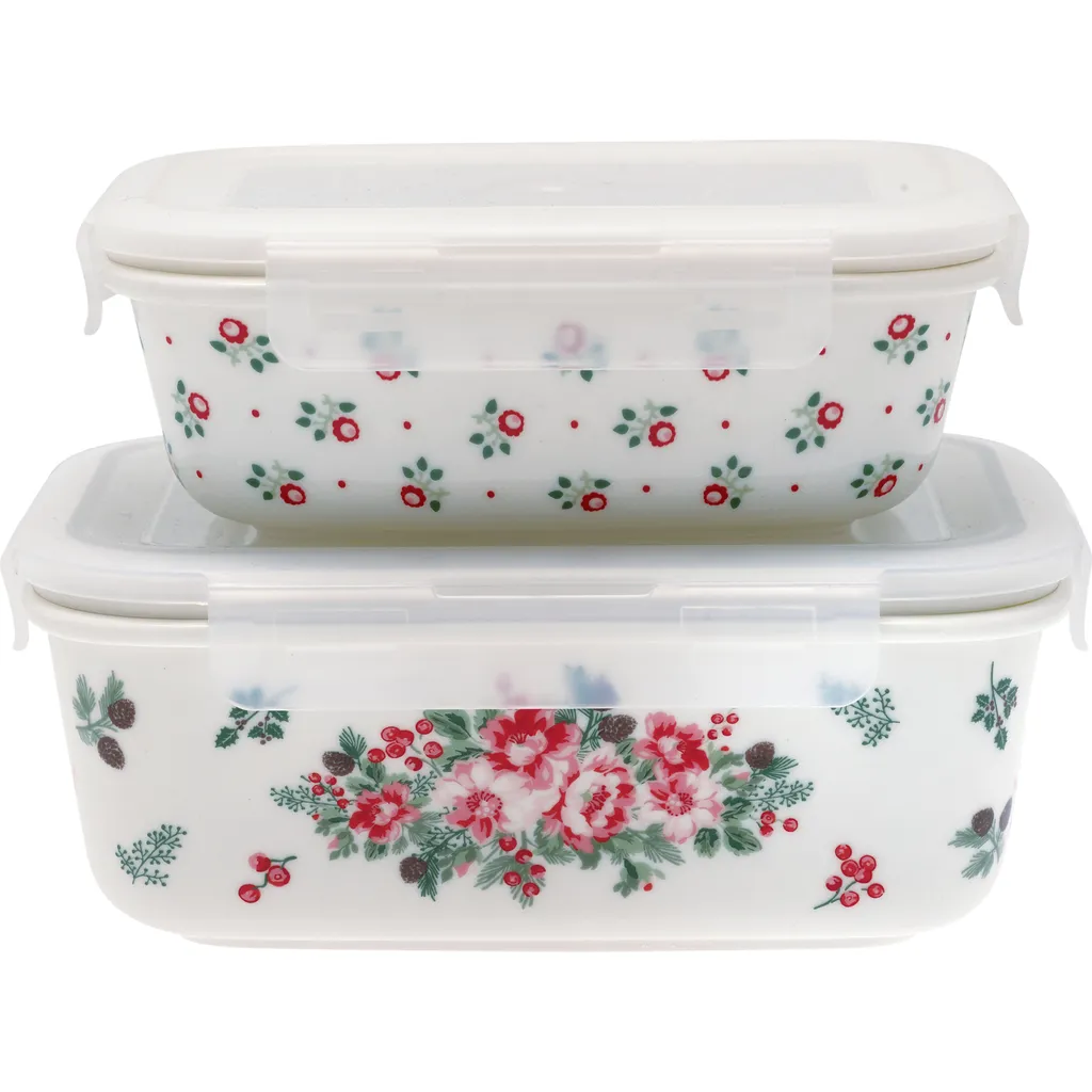 Das schicke Greengate Vorratsdosen-Set eignet sich optimal fürs Frischhalten von würzigen Soßen, herzhaften Salaten und leckeren Desserts im Kühlschrank. Aber auch Deine Küchendeko rundet das hübsche Duo stilvoll ab.
