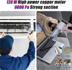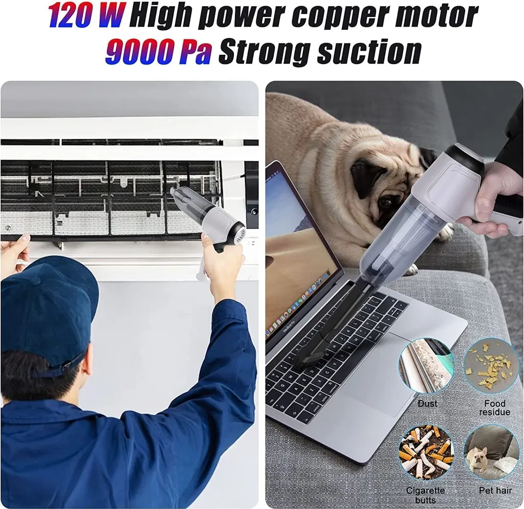 【3 In 1 Kabelloser Mini-Handstaubsauger】Drei in einem Nicht nur als Staubsauger für die Haus- und Autoinnenreinigung, sondern auch als Gebläse und Vakuumkompressor.