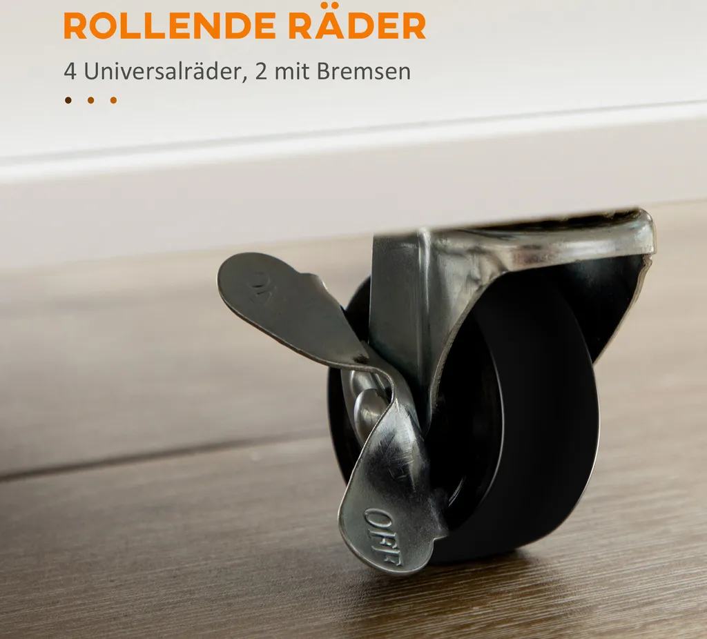 Dank der Räder können Sie der Küchenschrank leicht in der Küche oder in Ihrem Haus bewegen. 2 der 4 Räder sind feststellbar, damit die Insel stabil steht.