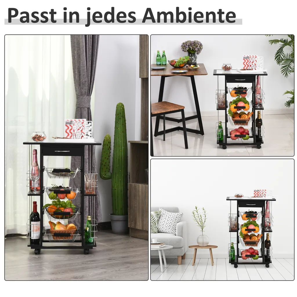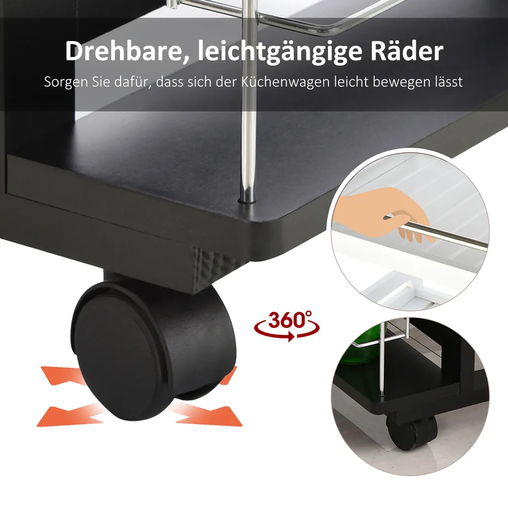 Durch sanftes Rollen von 4 360-Grad-Rädern kann der Wagen bequem von der Küche an andere Orte transportiert werden