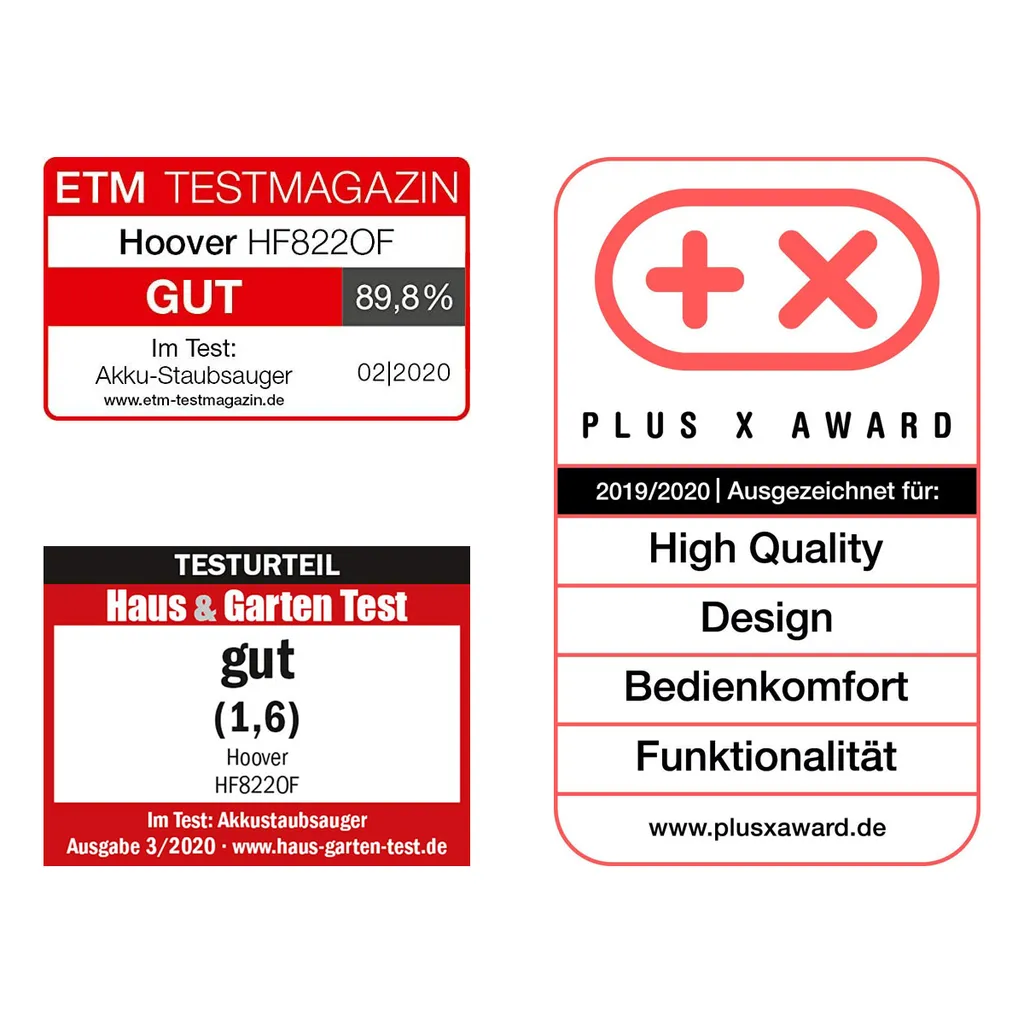Hoover HF822OF 011 Akku-Handstaubsauger mit Stiel beutellos Ladeanzeige Weicher Griff LED-Leuchten