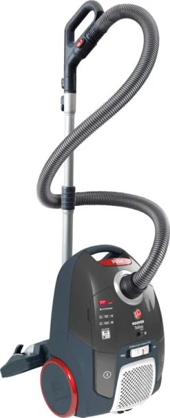 Präsentation : Der HOOVER Home and Car Schlittenstaubsauger – Telios Extra TX63SE – Kabelgebunden – 3,5 L eignet sich für den Gebrauch zu Hause, aber auch für die Reinigung eines Autos. Er ist mit verschiedenen Zubehörteilen ausgestattet, die ihn vielseitig und für alle Arten von Böden geeignet machen. Die Kombibürste eignet sich für Hart- und Teppichböden, der spezielle Mini-Turbo ist zum Entfernen von Tierhaaren geeignet und zwei weitere Bürsten sind für die Reinigung von Parkett und Teppichen bestimmt. Der Schlauch und die Tiefenbürste sind wichtig, damit Sie in Ihrem Auto richtig saugen können und überall hingelangen. Der Staubsauger ist leicht zu handhaben und sorgt mit einem Geräuschpegel von nur 64 dB für einen angenehmen Hörgenuss. Die 1908 in den USA gegründete Marke HOOVER hat sich einen soliden Ruf im Bereich der Staubsauger und generell der Haushaltsgeräte erarbeitet. Mit einer über 100-jährigen Geschichte weist sie eine Langlebigkeit auf, die von ihrer Fähigkeit zeugt, zuverlässige Produkte zu liefern. Vorteile : Ein Staubsauger, der sich sowohl für den Haushalt als auch für das Auto eignet. Umfangreiches Zubehör, um verschiedenen Situationen gerecht zu werden. Kann auf allen Bodenarten (Hartböden, Parkett, Teppichböden und Teppichen) verwendet werden. Eine Lautstärke von 64 dB, die das Gerät bei der Verwendung leise macht. Leistungsdimmer mit LED-Anzeige Im Lieferumfang enthalten: Hartboden- und Teppichbürste, Teppichbürste, Parkettdüse, Mini-Turbo-Düse, XL-Schlauch, Fugendüse, Staubbürste und Möbelbürste. Eigenschaften Typ: Schlittenstaubsauger mit Beutel Fassungsvermögen des Behälters: 3,5 L Verwendung: mit Kabel Filter: EPA 10, waschbar Geeignet für Tiere: ja Aktionsradius: 10 m Leistung: 450 W Spannung: 230 V. Variable Geschwindigkeit. :ja Geräuschpegel: 64 dB Farbe: grau, blau und rot Abmessungen (T x B x H): 30 x 44,3 x 23,7 cm. Gewicht: 4,7 kg Ref.