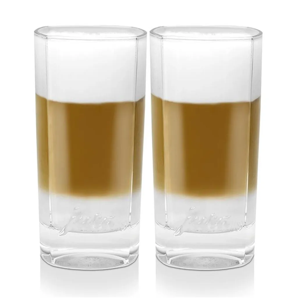 In den hochwertigen Kristallgläsern kommt der dreischichtige Latte macchiato in Perfektion zur Geltung. Die formschöne Optik wird Sie und Ihre Gäste begeistern. Das JURALogo als Relief im Glas vermittelt auch beim Anfassen allerhöchste Qualität. Die Gläser sind für die Geschirrspülmaschine geeignet. Fassungsvermögen ca. 300 ml ca. 15 cm hoch.