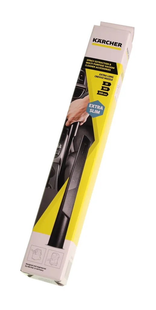 Die grundlegend überarbeitete extra lange Fugendüse präsentiert sich jetzt noch dünner und besticht durch noch besseres Handling. So lassen sich schwer erreichbare Stellen wie kleinere Zwischenräume oder Fugen im Auto sowie im Haushalt jetzt noch komfortabler reinigen. Die extra lange Fugendüse eignet sich für alle Kärcher Home & Garden Mehrzwecksauger.
