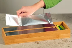 Alufolie? Frischhaltefolie? Verschlussclips? Mit dem Folienspender aus Bambus erhält alles seinen rechtmäßigen Platz!