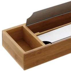Der Lebensmittelfolienspender von Kesper ist mit zwei Fächern ausgestattet, die eine praktische Funktion des Lebensmittelfolienschneiders und einer zusätzlichen Trennwand für Kleinteile wie Clips, Gummibänder usw. haben. Der Schubladeneinsatz ist aus Bambus, ideal für die Küche und sieht gut aus.