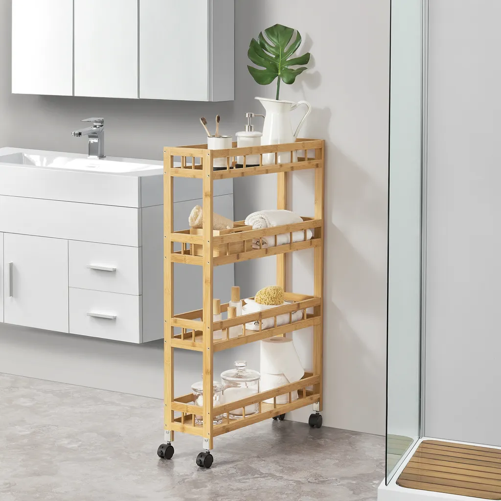 Das rollbare und praktische Küchenregal eignet sich perfekt um verschiedene Dinge auf kleinsten Raum zu verstauen. Das Allzweckregal kann einfach verschoben werden und ermöglicht durch die Ablagekörbe eine sortierte Aufbewahrung.