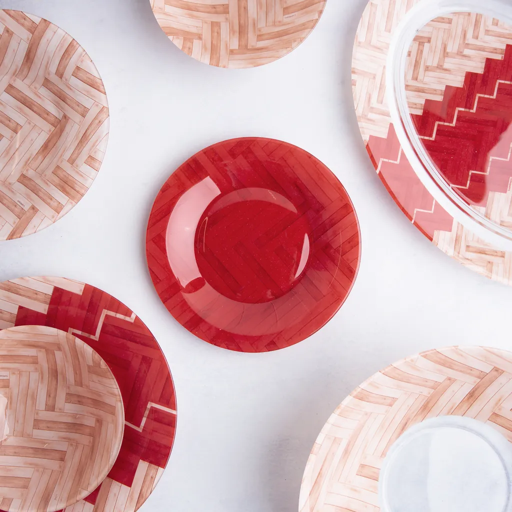 * Die Geschirrteile (außer dem Krugdeckel aus Kunststoff) wurden aus gehärtetem Glas hergestellt und mit einem einzigartigem Muster verziert