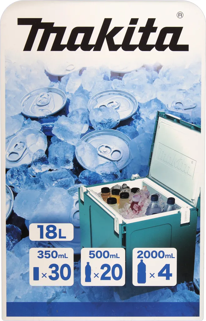 Diese praktische Kühlbox aus dem Hause Makita ist ein Makpac Koffer Größe 4 und somit mit allen Makpacs kompatibel. Die Koffer lassen sich bequem stapeln, festklicken und einfach transportieren. Die Konstruktion des Makita MAKPACs besteht aus doppelwandigen Eckprofilen und verstärkten Deckel-, Seiten- und Bodenflächen. Des Weiteren erhöhen abgerundete Gehäuse- und Griffkanten den Benutzer- und Tragekomfort. Diese Box hat eine Isoliereinlage, sodass zum Beispiel Getränke kühl gehalten werden können. Ein Stecker für elektrische Kühlung ist nicht vorhanden. So ist diese Box perfekt für heiße Sommertage geeignet, wenn keine Steckdose in der Nähe ist. Sie hat ein Volumen von 18 Litern. Sie fasst 30 kleine Dosen, 20 x 0,5 Liter Flaschen oder vier Mal 2 Liter Flaschen. Durch den mitgelieferten Tragegurt lässt sie sich zudem gut transportieren.