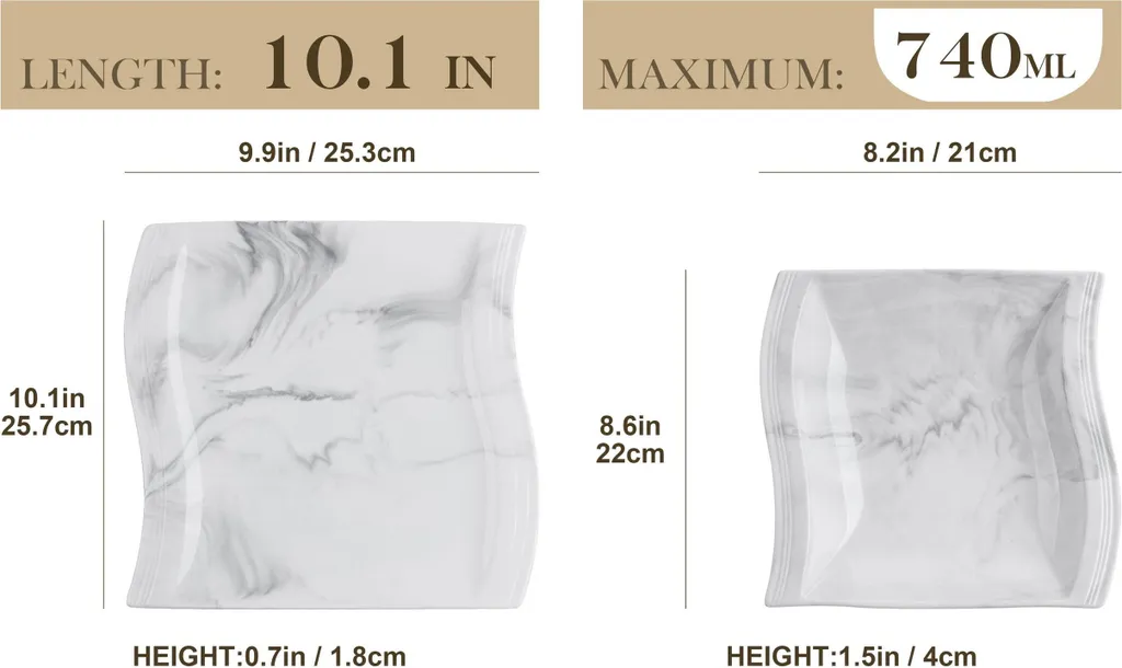 - SCHÖNES GESCHIRRSET AUS HOCHWERTIGEM PORZELLAN IN MARMOR | Wir halten an der alten chinesischen Porzellantechnologie fest und bestehen darauf, jeden Prozess von Hand zu machen. Hochwertige Porzellanselektion, Einzigartige und künstlerische Verglasungstechnik und darüber hinaus mit einem präzise gesteuerten Temperaturbrand macht jeder Teller besonders unterschiedlich.