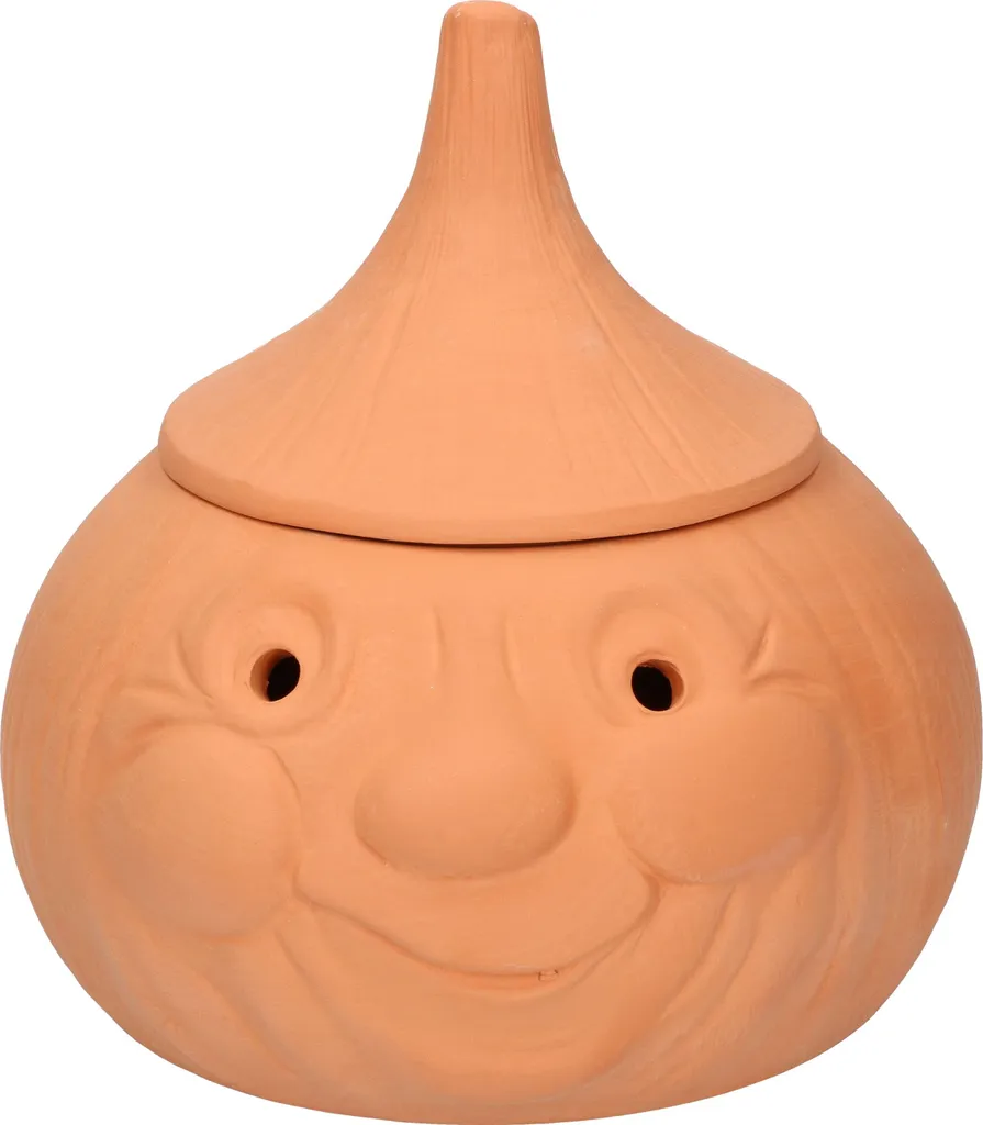 Der super schöne Aufbewahrungsbehälter in witziger Zwiebelform, zaubert nicht nur ein Lächeln ins Gesicht, sondern sorgt vor allem für die optimale Lagerung von Lauch und Knollengemüse. Ca. 900 g fasst das dickwandige Gefäß aus echter Terrakotta und schützt zugleich Ihre Lebensmittel vor Licht und Feuchtigkeit. Durch die eingearbeiteten Öffnungen in den Augen und auf der Rückseite entsteht die ideale Luftzirkulation, die Keimbildung verhindert und Inhalte länger frischhält.