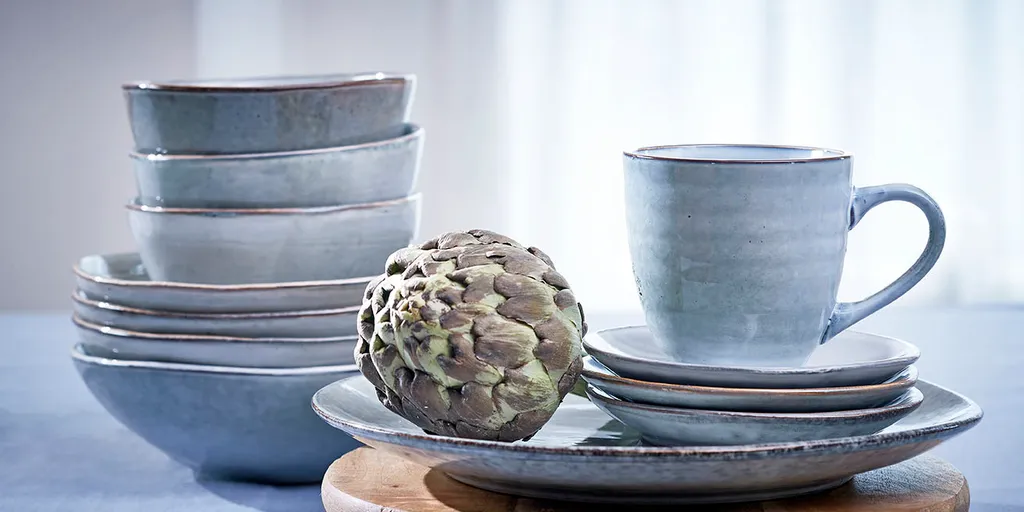 Rustikal und robust, so lässt sich das Tafelservice Tabo von Mica Decorations am besten beschreiben. Jedes mit einem eigenen authentischen Look, der zum puren Genuss passt. Warum sollte man sich für einen Artikel entscheiden, wenn man auch gleich ein ganzes Set nehmen kann? Dieses Tafelservice Tabo besteht aus 16 Teilen und ist für 4 Personen geeignet. Das Set besteht aus 4 Bechern mit den Maßen H10,5 x Ø8 cm, 4 Schalen mit den Maßen H8 x Ø15 cm, 4 kleinen Tellern mit Ø20,5 cm und 4 Esstellern mit Ø26 cm. Das Service passt mit der zarten, grau-blauen Farbe in jedes Interieur!