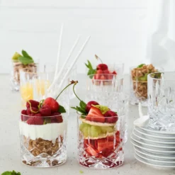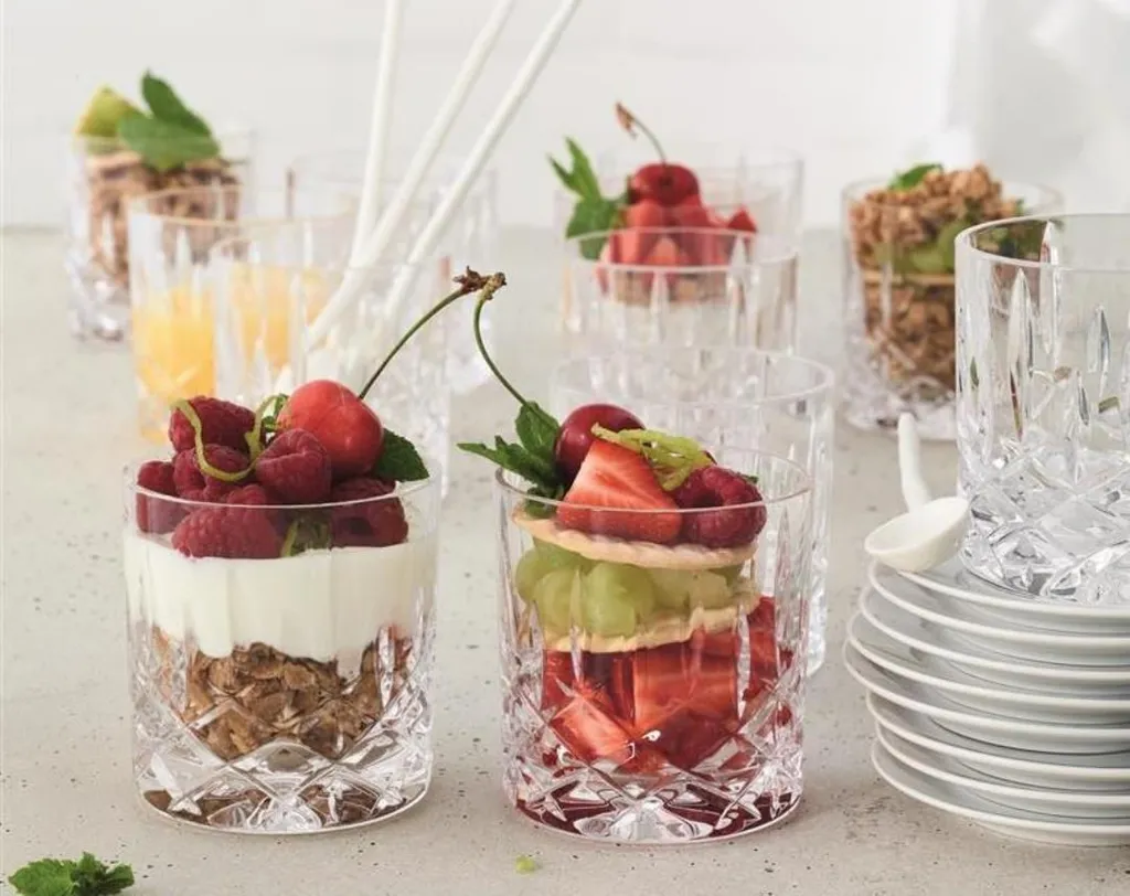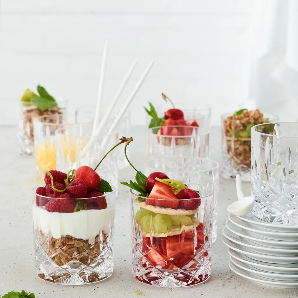 Dit single old fashioned glas uit de serie Noblesse van Nachtmann is perfect voor whisky en old fashioned. Dit bijzonder luxe, prachtig geslepen whiskey glas trekt alle aandacht naar de voet. Hier zie je een helder ruitvormig patroon dat verder naar boven overgaat in langwerpige figuren. Eenmaal gevuld staat er pure luxe bij jou op tafel. Deze set bevat 4 single old fashioned glazen, ieder met een inhoud van 245 milliliter.Het ‘Noblesse’ glaswerk van Nachtmann wordt gemaakt in Duitsland uit kraakhelder kristalglas. De glazen en schalen zijn schitterend geslepen met fijne details en een prachtige lichtbreking. Dankzij de hardheid van het kristalglas is het glaswerk duurzaam, zeer krasbestendig en behoudt het haar glans. En, handig, alle artikelen en items mogen gewoon in de vaatwasmachine.