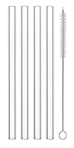 Eine Reinigungsbürste für die Glastrinkhalme ist ebenfalls im Set enthalten.