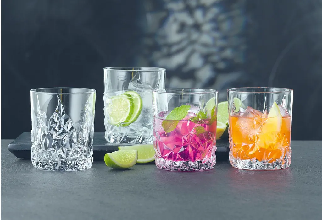 Die einzigartige Textur verbreitet ein elegantes und modernes Design im Diamant-Look. Der Rand ist ausnahmslos wulstfrei und die Gläser bieten eine brillante Lichtbrechung. Vielfältiges Mundgefühl