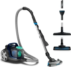 Der neue beutellose Philips Staubsauger PowerPro Active bietet optimale Reinigungsleistung dank fortschrittlicher PowerCyclone 7-Technologie und TriActive+-Düse, die für die höchstmögliche Staubaufnahme entwickelt wurden. Der Staubbehälter lässt sich hygienisch entleeren.