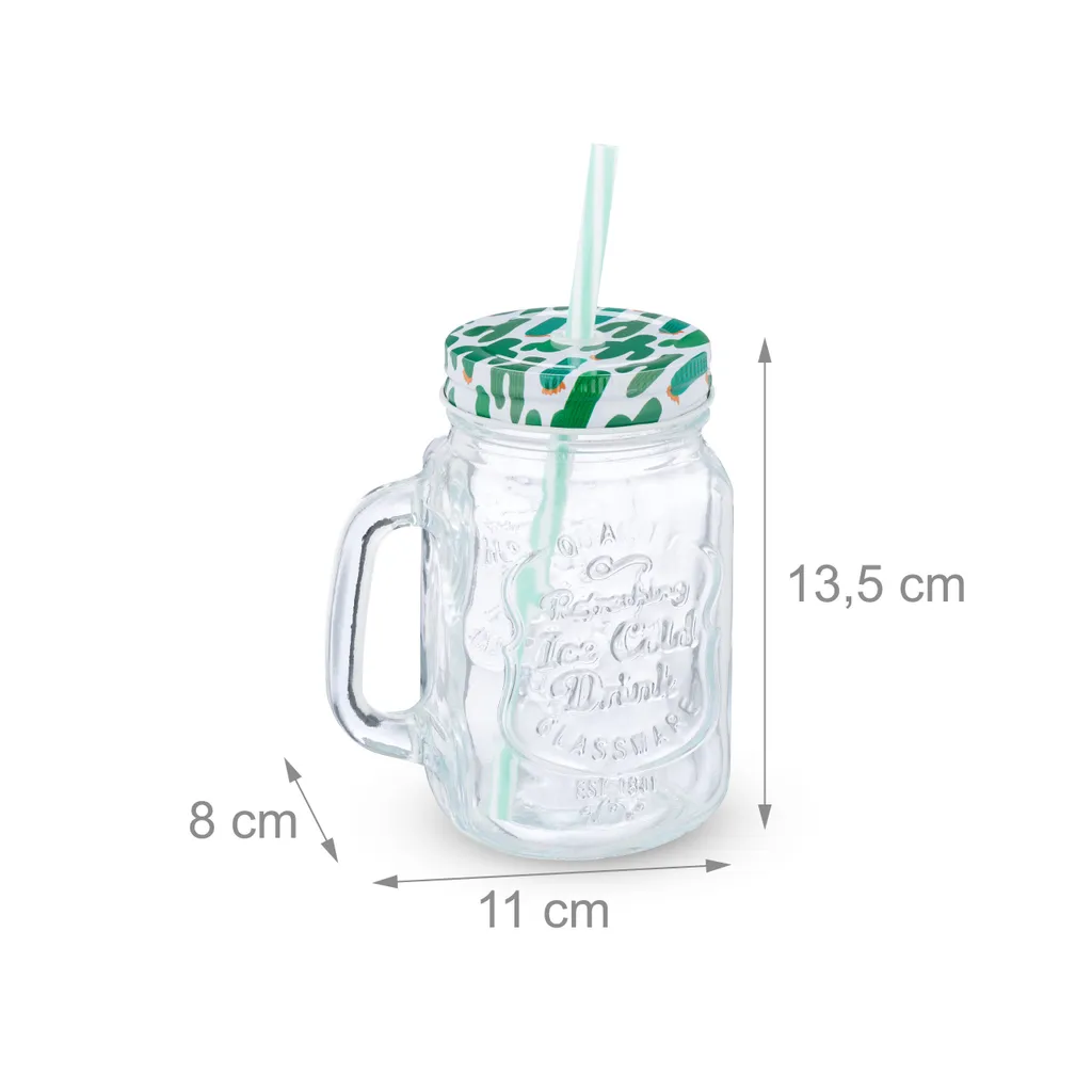 Dieses 8er Set Trinkgläser ist ideal, um erfrischende Kaltgetränke wie Säfte, Limonaden oder Eistee und Cocktails zu genießen. Mit ihrem Kaktus-Design und den kräftigen Farben werden die Sommergläser zum Hingucker in Deiner Hausbar oder auf der nächsten Gartenparty. Dank der Strohhalme sind die Getränke schnell geleert, während der praktische Schraubdeckel den Inhalt vor Schmutz oder Insekten bewahrt. Genieße den Sommer mit Deinen Freunden in vollen Zügen mit diesen trendigen Limogläsern.