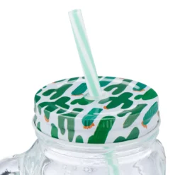 – Praktisches 8er Set mit Deckeln und Trinkhalmen in Kakteen-Optik