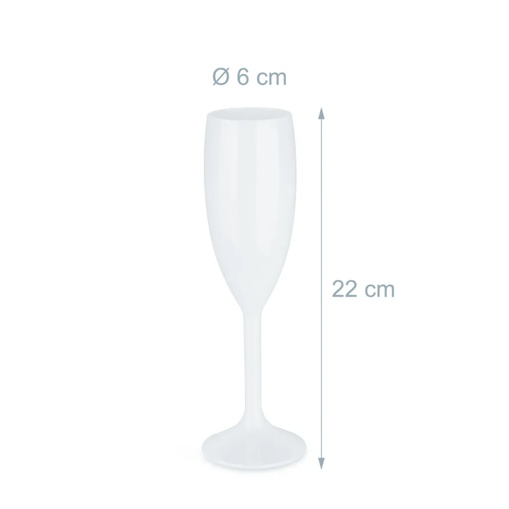Mit diesem Sektgläser 6er Set aus Kunststoff ist für Deine nächste Party vorgesorgt! Um eine stressfreie Feier zu verbringen, sind diese bruchsicheren Gläser ideal, denn Du musst Dir keine Sorgen um Glasscherben machen. Die Prosecco-Gläser eignen sich für viele Gelegenheiten: Zum Anstoßen an Silvester, Geburtstagen und Hochzeiten, den Sektempfang bei Events oder auch für Camping Ausflüge. Dank der stabilen Fertigung lassen sich die hochwertigen Kunststoff-Sektgläser problemlos wiederverwenden.