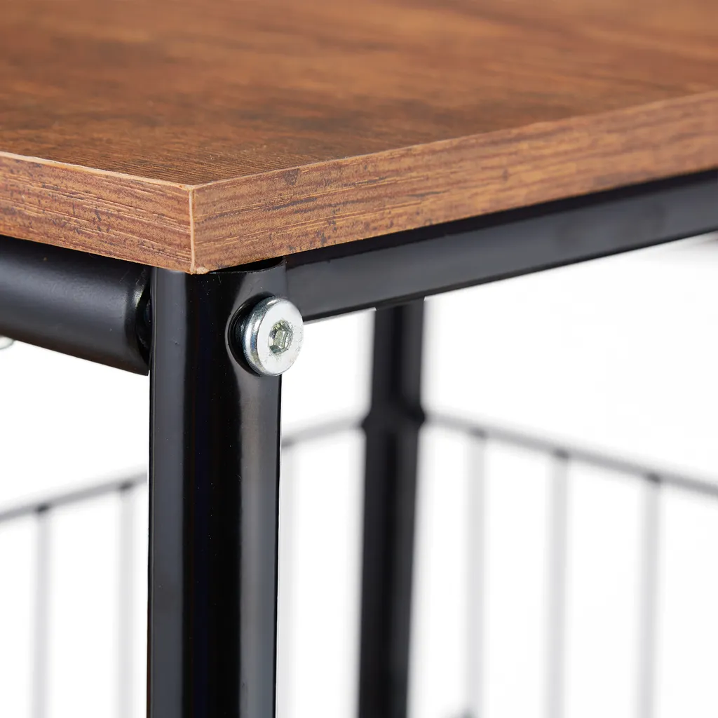 Dieser moderne Servierwagen überzeugt mit seinem ansprechenden Industrial Design. Der Materialmix aus MDF und Metall in verschiedenen Farben verleiht dem Küchenwagen dabei einen dekorativen Vintage Look, der sich sowohl in der Küche als auch im Ess- oder Wohnzimmer sehen lassen kann. Auf den 3 Ablagen und in den 3 Körben lassen sich Getränke, Speisen und mehr problemlos transportieren oder aufbewahren. Nutzen Sie den Küchentrolley daher ebenso als Beistellregal neben der Couch oder dem Bett.