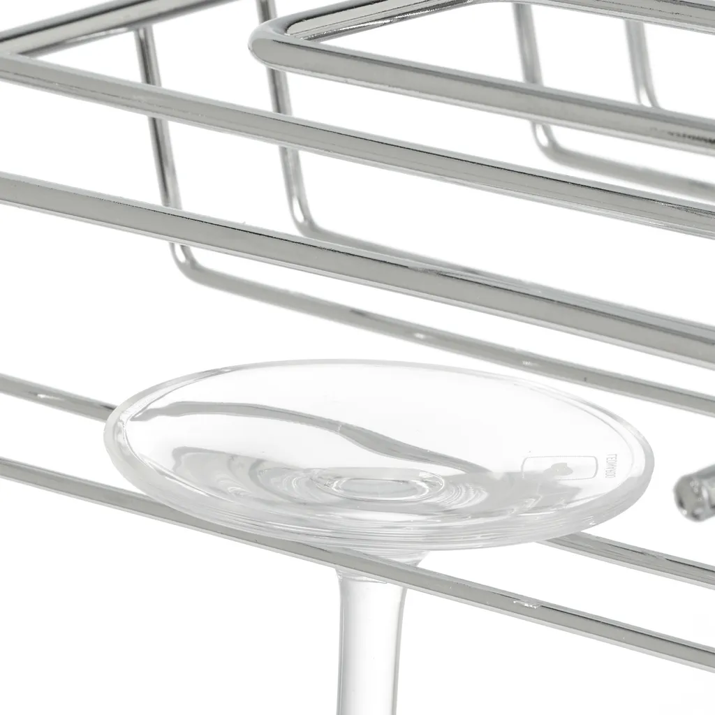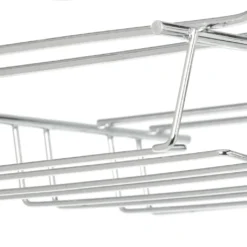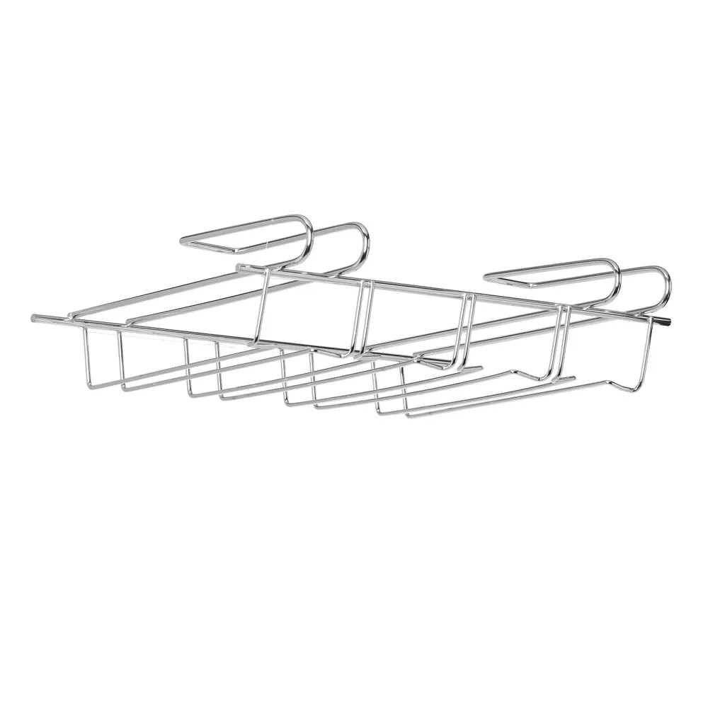 Bis zu 12 Stielgläser unterschiedlicher Art bewahren Sie mit dieser 4-reihigen Gläserschiene platzsparend und dekorativ auf. Sektgläser, Weingläser oder Biergläser hängen dank des Glasaufhängers geordnet nebeneinander und nehmen keine Stellfläche im Küchenschrank in Anspruch. Dafür wird der Schrankeinsatz einfach am Regalbrett eingehängt, die beiliegende Halterung sorgt zusätzlich für Stabilität. Er ist aus verchromtem Eisen gefertigt und kann bei Bedarf jederzeit wieder abgenommen werden.