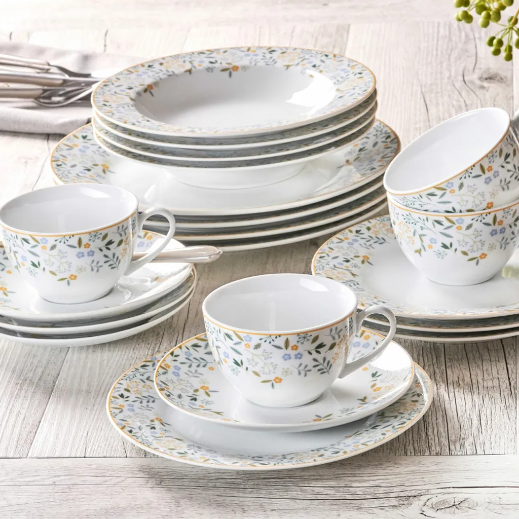 - Set besteht aus: 4 x Ober & Untertassen |4 x Suppenteller | 4 x Frühstücksteller | 4 x Speiseteller