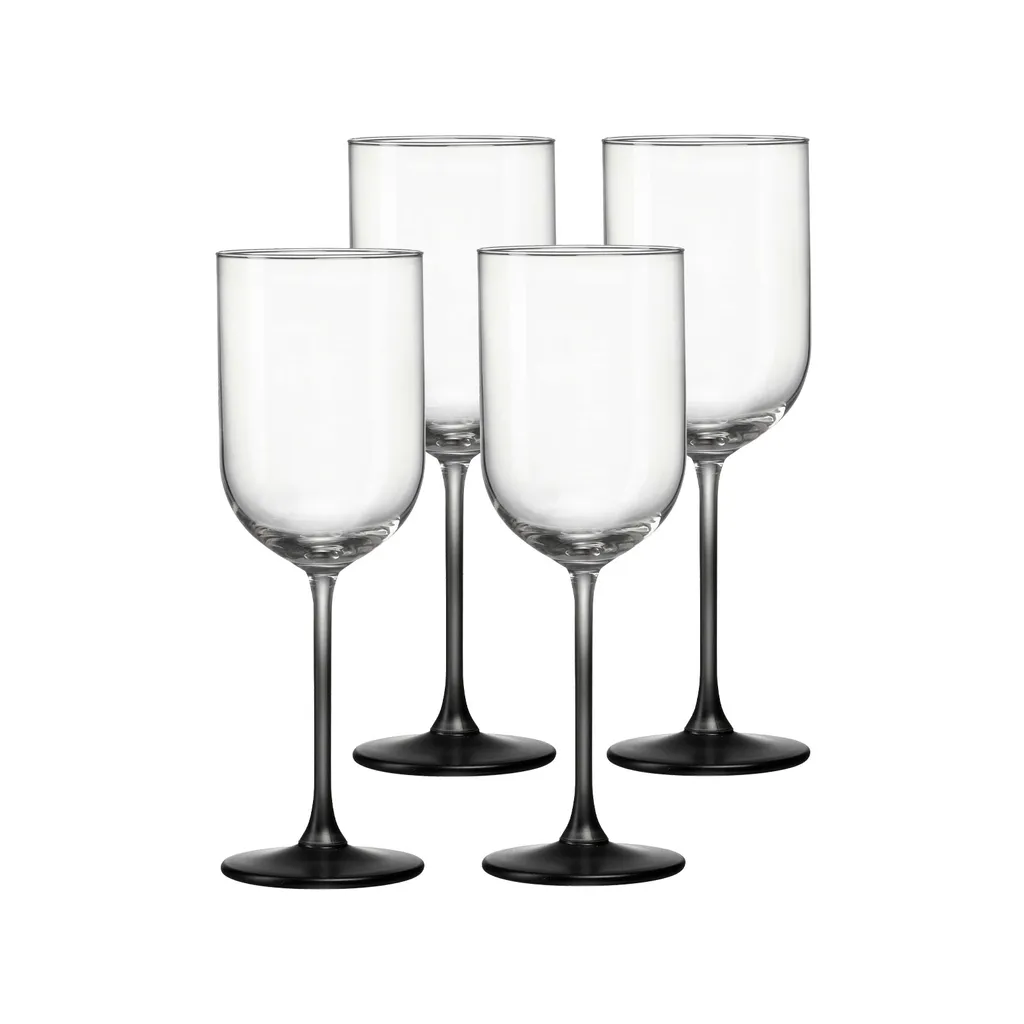 Minimalistisches Kelchglas mit Bodenplatte und Stiel in Mattschwarz, das nicht nur in Kombination mit der jasper-Keramik, sondern auch mit (fast) jedem anderem Geschirr ein toller Eyecatcher auf dem gedeckten Tisch ist! Das Set besteht aus: 4x Rotweinglas, 4x Weißweinglas, 4x Sektglas