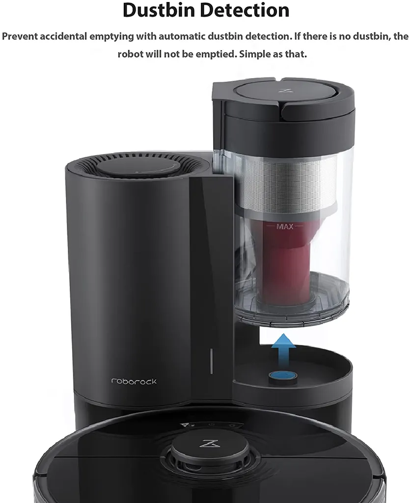Smarte Mülltonnenerkennung: Verhindern Sie unbeabsichtigtes Entleeren mit der intelligenten Sensorik zur Erkennung von Mülltonnen. Wird der Behälter aus der Saugstation gezogen, wird der Saugroboter nicht entleert. So einfach ist das