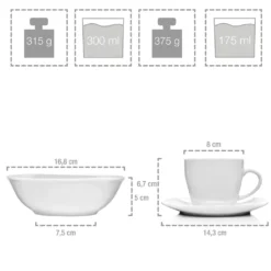 12x Tasse | ØxH: 8×6,7 cm | Füllmenge 175 ml | Gewicht 205 g