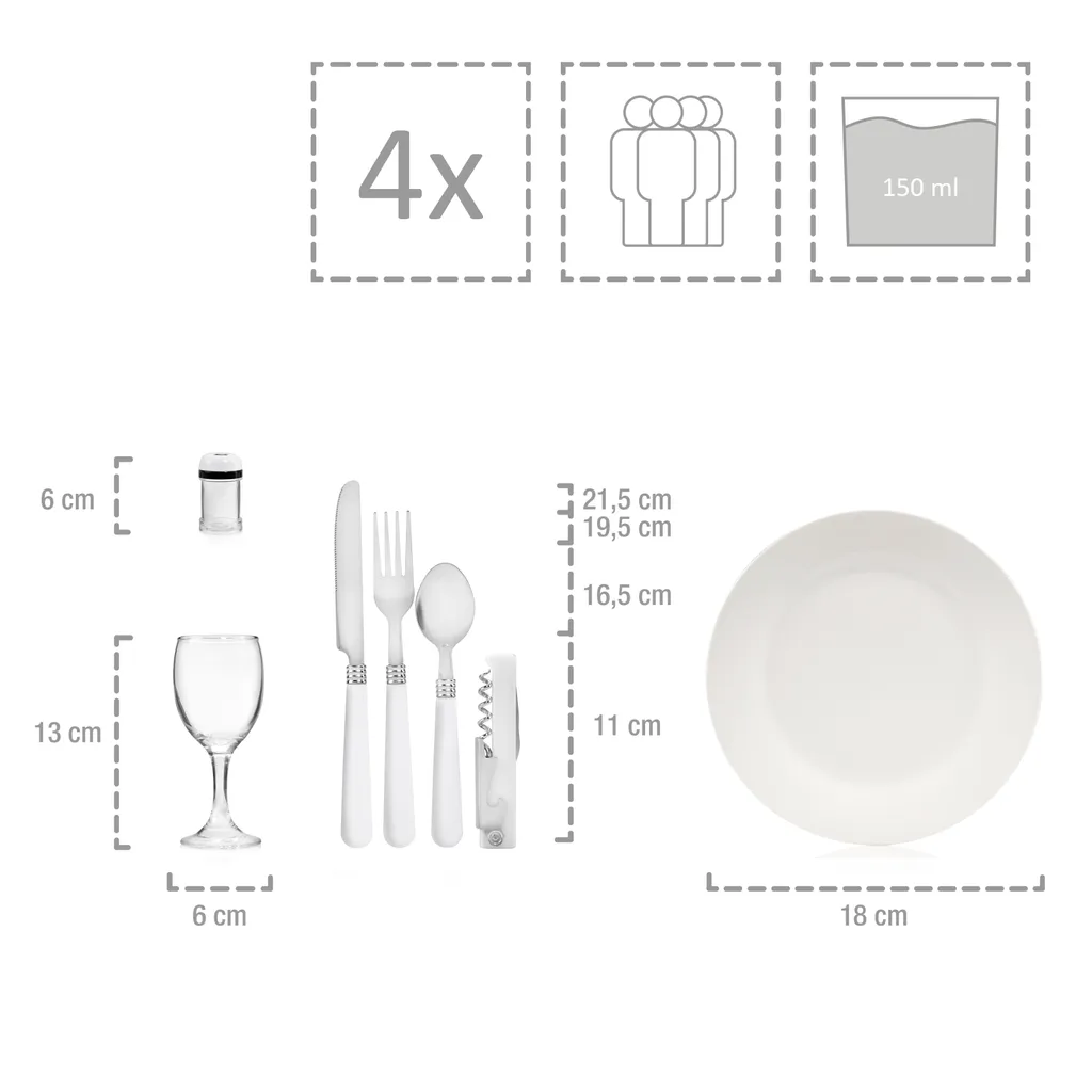 Der Weidenpicknickkorb ist nicht nur praktisch, auch die Qualität überzeugt. Der Picknickkoffer besteht aus Weide und Leder. Die Teller bestehen aus Porzellan, die Gläser aus hochwertigem Kunststoff und das Besteck aus rostfreiem Stahl und hochwertigen Kunststoffgriffen