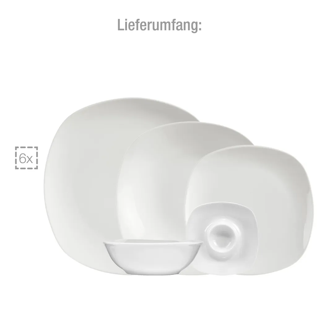 Mit 30 Teilen kommt ganz schön was zusammen! Das Geschirr Set beinhaltet 6 Speise-, Suppen- und Dessertteller sowie 6 Schalen und 6 Eierbecher. Somit wird dieses Geschirrservice zum absoluten Allrounder und begleitet Sie vom Frühstück bis hin zum Dinner
