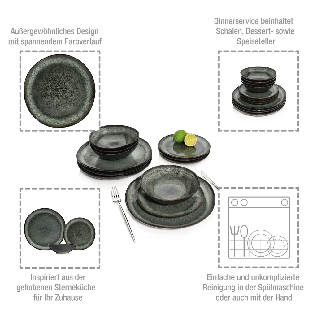 Das Tellerset Kopenhagen ist Ihr neuer, treuer Begleiter. Das Geschirr Set ist hochwertig verarbeitet und absolut robust. Verwenden Sie dieses Porzellan Service im Alltag als auch zu feierlichen Anlässen, denn es lässt sich einfach reinigen und ist spülmaschinenfest.