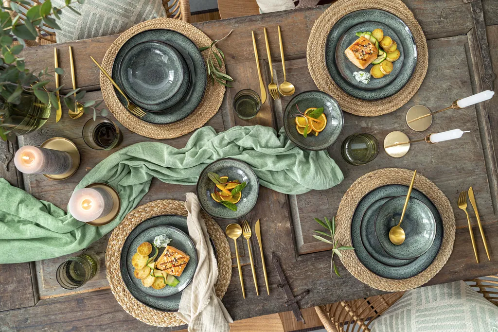 Jeder Teller des Geschirr Set Kopenhagen weißt eine unterschiedlich ausgeprägte Musterung auf, wodurch ein unverwechselbarer Eindruck auf Ihrem Esstisch entsteht. Dies bietet Ihnen die Möglichkeit Ihre Speisen immer stilvoll zu servieren und Ihren Gästen den Besten Genuss zu ermöglichen.