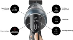 - Leistungsstarke, kabellose Reinigung mit einer Saugleistung von bis zu 210 W