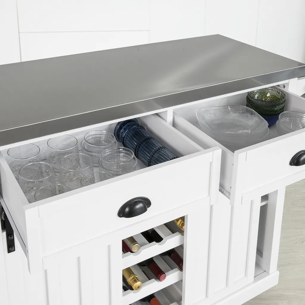 - Mit Flaschenablage und 2 Schubladen für Weine und viele Verstaumöglichkeiten; ein Handtuchhalter an der Seite.