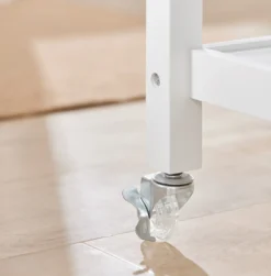 - Die Rollen sind mit Stoppern ausgestattet und können so festgestellt werden.