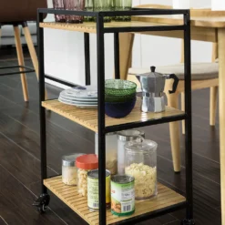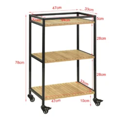 Dieser Küchenwagen ist aus Bambus und Metall gefertigt, stabil und bietet sehr viel Stauraum für verschiedene Utensilien in Ihrer Küche oder im Badezimmer.