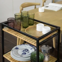Dieser multifunktionelle Küchenwagen verfügt über ein schlichtes Aussehen und klare Struktur und fügt sich einfach in viele Einrichtungsstile ein.